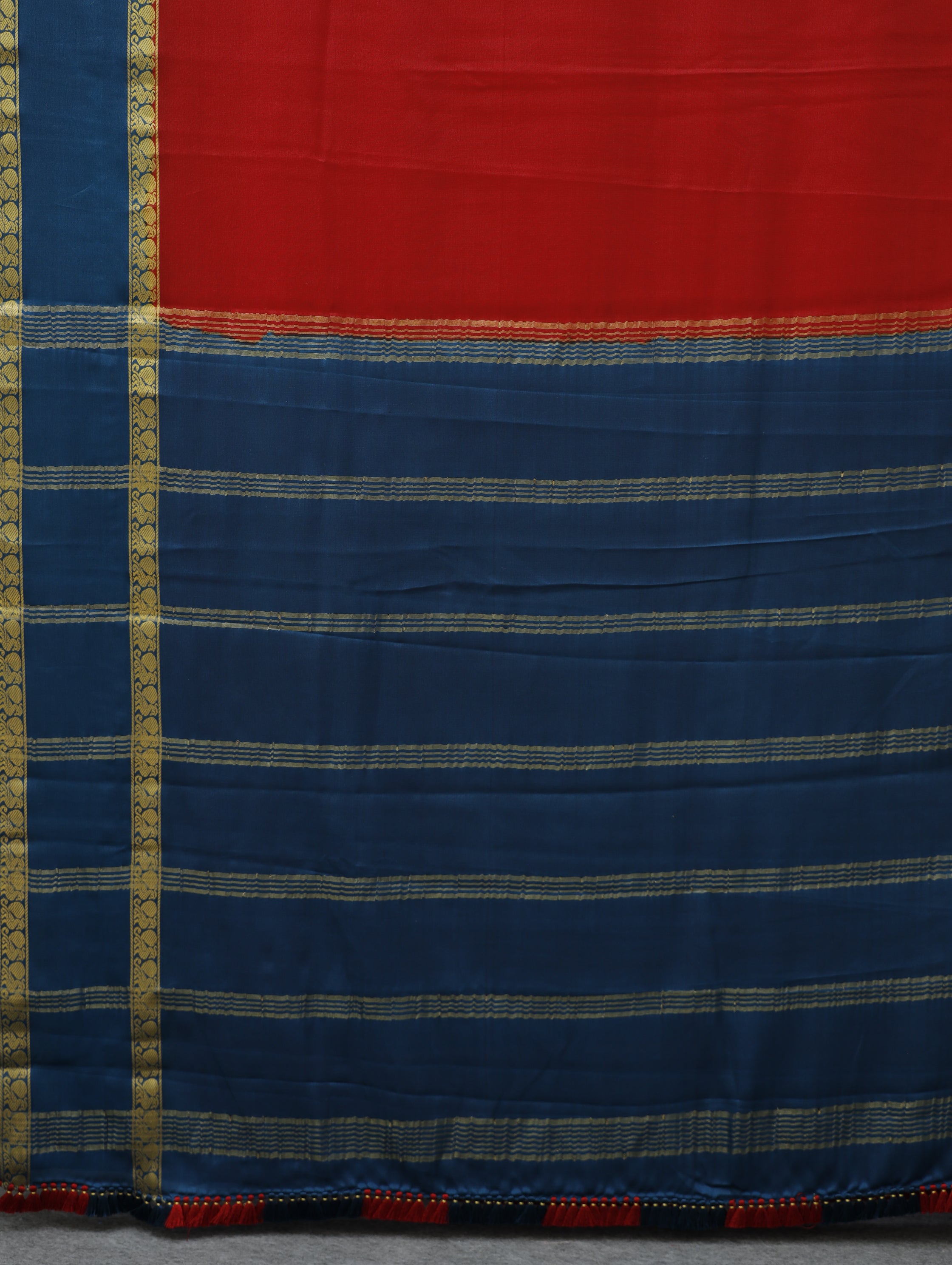 Mysore silk saree - red with cobalt blue
